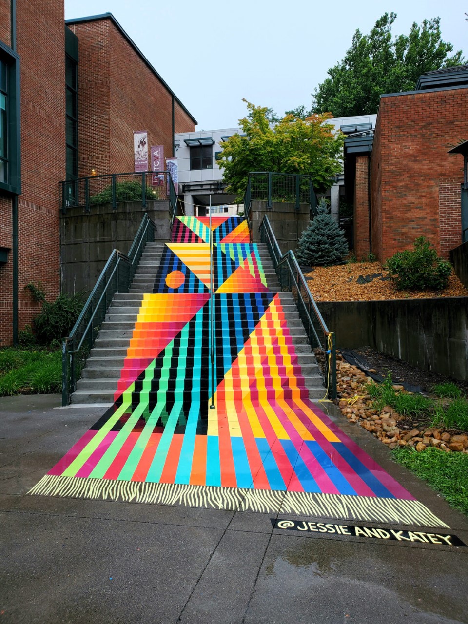 Αντιμετώπισαν τα σκαλοπάτια από τσιμέντο ως αργαλειό: «Δουλέψαμε πολύ μαθηματικά, για να έχουμε σωστά τις γωνίες και την προοπτική, αλλά τελικά τα πάντα ήρθαν και κούμπωσαν» είπε, στο Colossal, το καλλιτεχνικό δίδυμο από τη Βαλτιμόρη που είναι γνωστό ως Jessie and Katey.