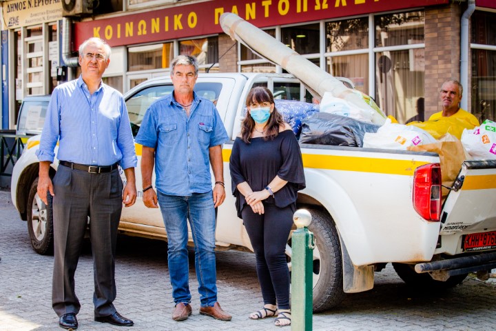 Η παράδοση έγινε από τον Δήμαρχο Κηφισιάς Γιώργο Θωμάκο και την Πρόεδρο της Κοινωνικής Μέριμνας Κατερίνα Καραλή στον Αντιδήμαρχο Καθαριότητας Διρφύων-Μεσσαπίων Εύβοιας Δημήτρη Γιαννούτσο ο οποίος κατά τις μεσημβρινές ώρες της Τρίτης 1ης Σεπτεμβρίου 2020 επισκέφθηκε το Κοινωνικό Παντοπωλείο Νέας Ερυθραίας και παρέλαβε σημαντική ποσότητα από τα συγκεκριμένα είδη.