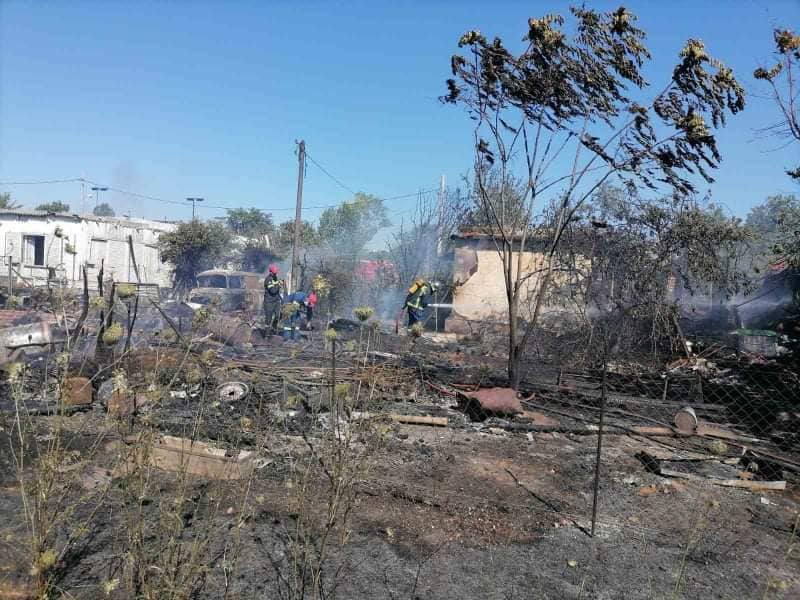 (πλαστικά, χαρτοκιβώτια). Η φωτιά απλώθηκε στα οικόπεδα όπου βρίσκονταν διάσπαρτα τα