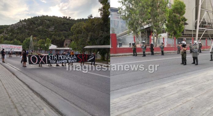 Σύμφωνα με μαρτυρίες, ακούστηκε ο ήχος μολότοφ από την πλευρά των συγκεντρωμένων με αποτέλεσμα οι διμοιρίες μέσα από το εργοστάσιο και πίσω από τον χώρο στάθμευσης να απαντήσουν με «ομοβροντία» χημικών και κρότου – λάμψης και να αναγκάσουν τους διαδηλωτές σε φυγή, προς την πόλη του Βόλου. Οι διμοιρίες των αστυνομικούς τους κυνήγησαν μέχρι κάποιο σημείο, έριξαν ξανά χημικά, με αποτέλεσμα, όπως υποστηρίζουν διαδηλωτές, να υπάρξουν αρκετές λιποθυμίες.