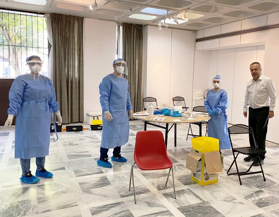 Εξετάσεις από συνεργείο του ΕΟΔΥ εντός του Δημαρχείου.