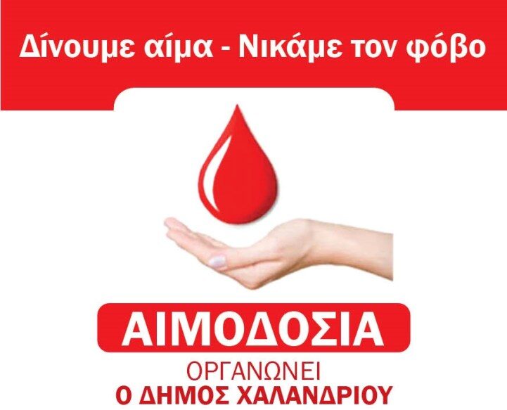 Με γνώμονα τη σοβαρή κατάσταση που έχει διαμορφωθεί λόγω της πανδημίας και την επιτακτική ανάγκη που υπάρχει για αίμα, ο Δήμος Χαλανδρίου καλεί όλους τους πολίτες που πληρούν τις προϋποθέσεις, να προσέλθουν στην εθελοντική αιμοδοσία, αποδεικνύοντας στην πράξη την αγάπη και την αλληλεγγύη τους για το συνάνθρωπό μας.