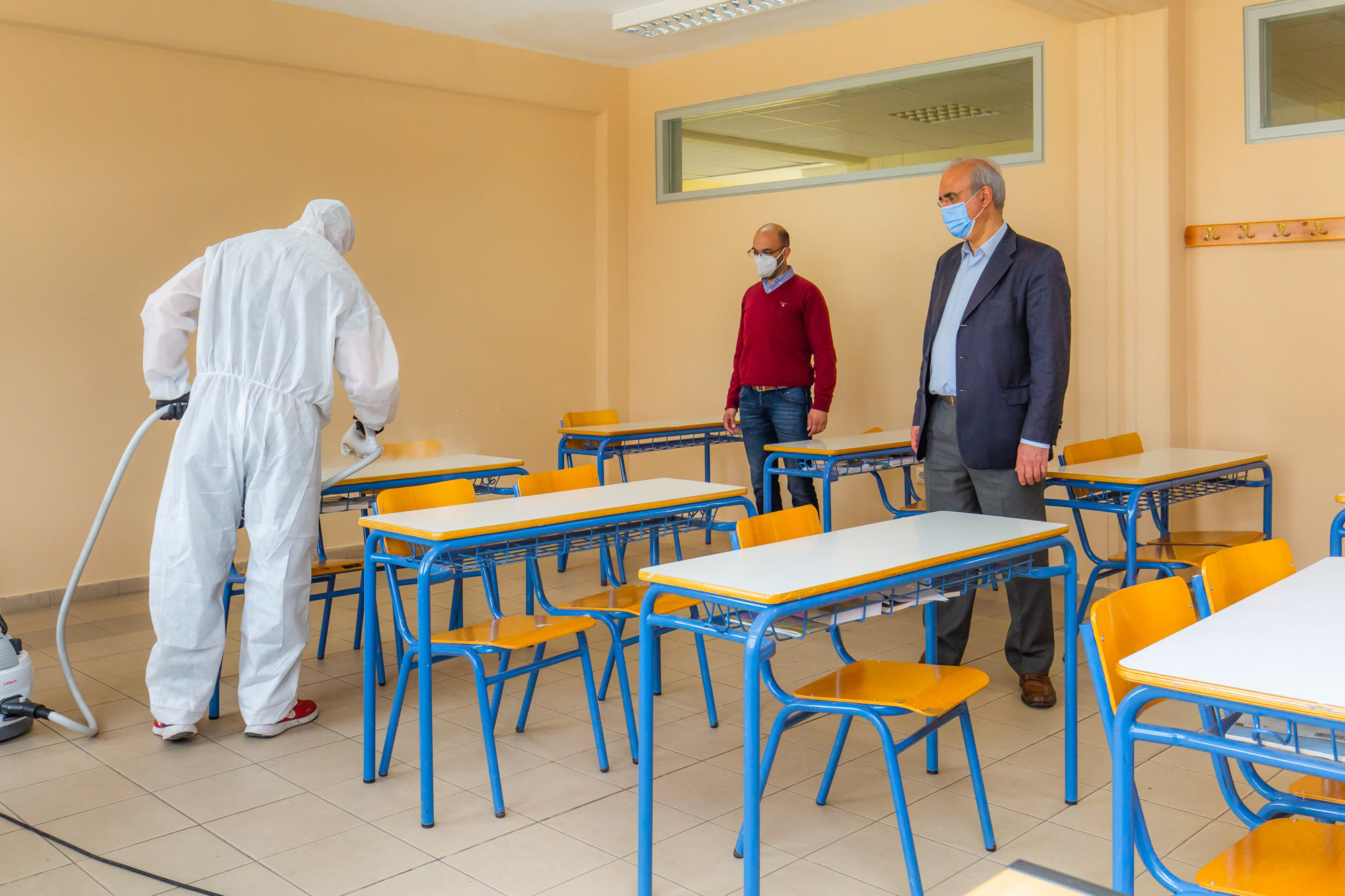 Την Παρασκευή 9/4 έγιναν απολυμάνσεις από ειδικό συνεργείο στους κοινόχρηστους χώρους αλλά και στις αίθουσες Λυκείων του Δήμου