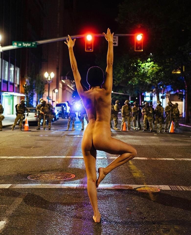 Η εντυπωσιακή παρέμβαση της γυμνής ακτιβίστριας που απώθησε μόνη της τις ομοσπονδιακές ειδικές δυνάμεις στο Πόρτλαντ πέρασε μάλλον φευγαλέα από τις οθόνες μας, σαν οπτασία ή σαν άλλο ένα απίστευτο αλλά αληθινό στιγμιότυπο μιας απόκοσμης χρονιάς.