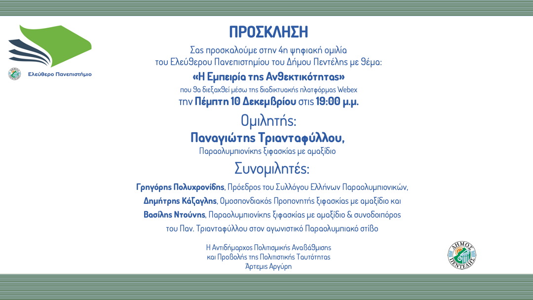 Την Πέμπτη 10/12/2020 στις 19:00μμ θα πραγματοποιηθεί ομιλία μέσω webex με