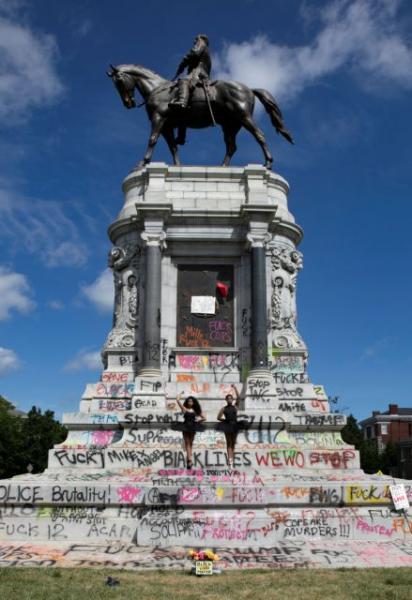 Η Kennedy George και η Ava Holloway, δύο κορίτσια 14 ετών, στάθηκαν μπροστά από το μνημείο του Στρατιωτικού Ρόμπερτ Λη, αφού ο κυβερνήτης της Πολιτείας διέταξε την αφαίρεσή του, ντυμένες στα μαύρα και με υψωμένη τη γροθιά τους.