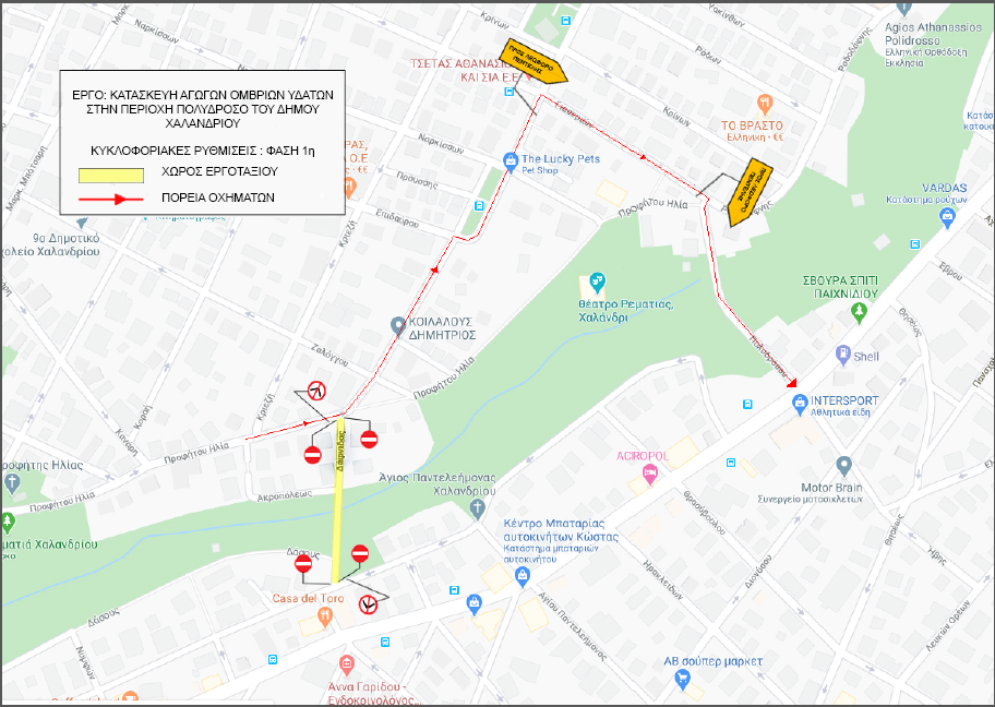 Για την υλοποίηση του έργου κατασκευής αγωγών ομβρίων στο Πολύδροσο του Χαλανδρίου έχουν σχεδιαστεί λεπτομερώς και θα εφαρμοστούν κυκλοφοριακές ρυθμίσεις, οι οποίες θα ισχύσουν σταδιακά, ανάλογα με τη φάση των εργασιών.