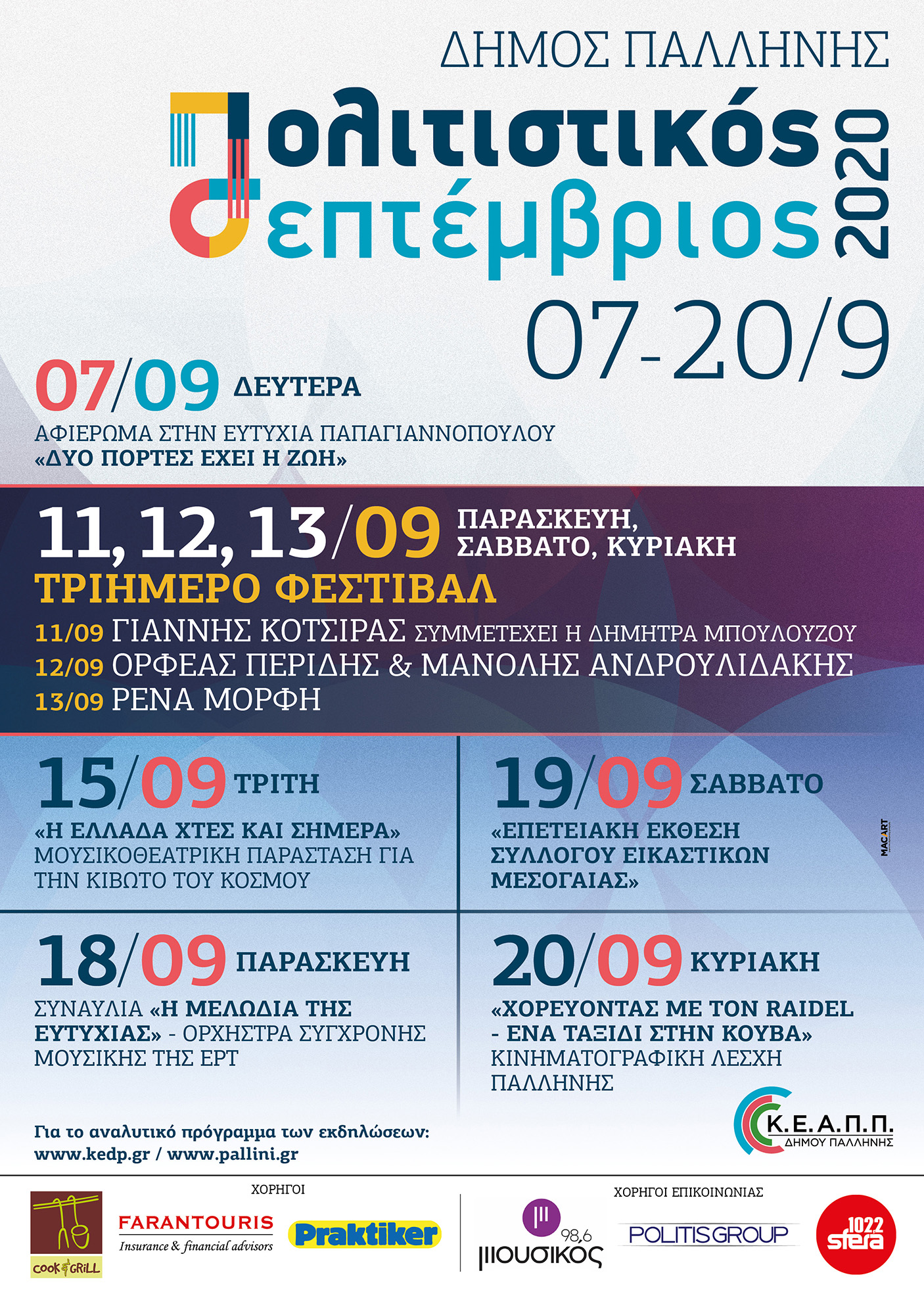 ΤΟ ΠΛΗΡΕΣ ΠΡΟΓΡΑΜΜΑ ΤΟΥ ΠΟΛΙΤΙΣΤΙΚΟΥ ΣΕΠΤΕΜΒΡΙΟΥ 2020 ΤΟΥ ΔΗΜΟΥ ΠΑΛΛΗΝΗΣ