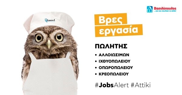 Αυτή τη δύσκολη περίοδο για τους ανθρώπους που αναζητούν εργασία, η Knowl (https://www.knowl.gr/home) συνεχίζει τη δραστηριότητά της, συνεργαζόμενη με εταιρείες που αναζητούν προσωπικό, διευκολύνοντας την είσοδο των υποψηφίων στην αγορά εργασίας. Συγκεκριμένα, σας ενημερώνουμε για τη συνεργασία της knowl με τον όμιλο ΑΒ Βασιλόπουλος για την εύρεση πωλητών φρέσκων προϊόντων σε καταστήματα της Αττικής, στα τμήματα αλλοιώσιμων (τυριά,αλλαντικά), ιχθυοπωλείου, οπωροπωλείου και κρεωπολείου.