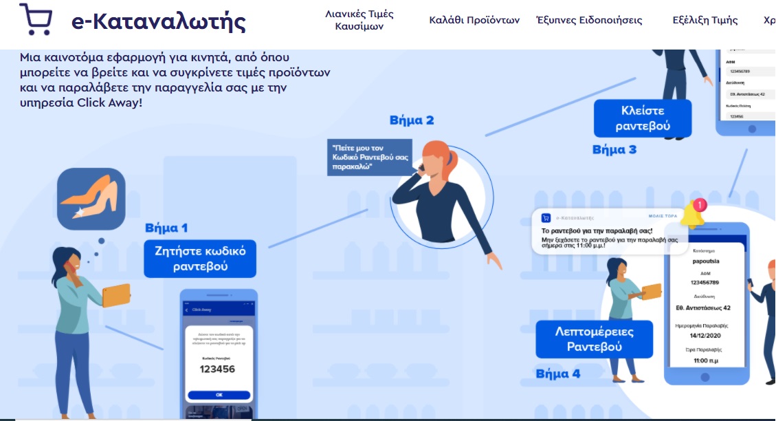 Στο e-Καταναλωτής υπάρχουν οι δυο βασικές κατηγορίες Click away και Click inside.