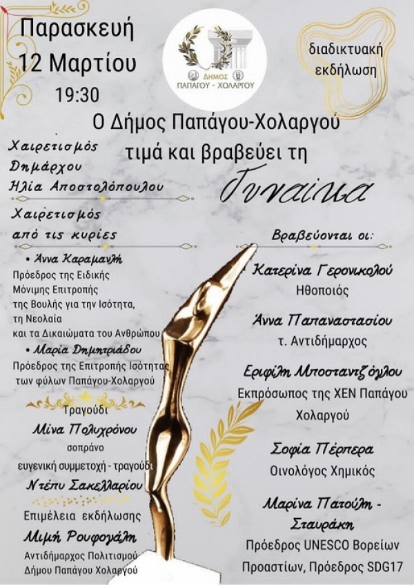 Ο Δήμος Παπάγου- Χολαργού τιμά τη γυναίκα & βραβεύει γυναίκες της πόλης