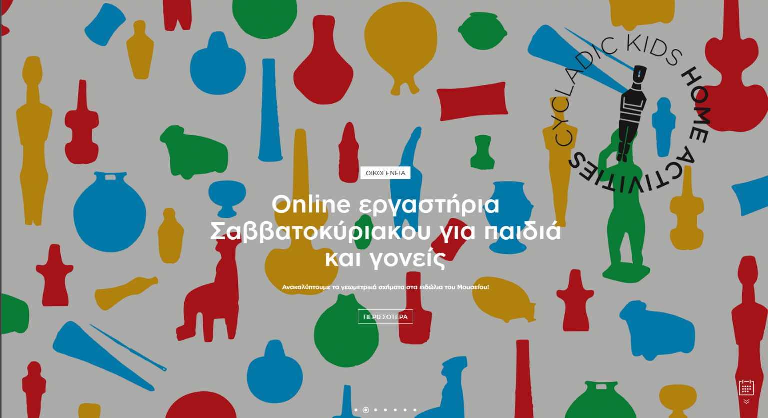 Τα αγαπημένα εκπαιδευτικά προγράμματα του Μουσείου Κυκλαδικής Τέχνης από φέτος θα πραγματοποιούνται και online. Τα online εργαστήρια Σαββατοκύριακου θα γίνονται όχι μόνο κατά τη διάρκεια που το μουσείο θα παραμένει κλειστό, αλλά καθιερώνονται και μετά, δίνοντας τη δυνατότητα συμμετοχής τόσο σε οικογένειες απ’ όλη την Ελλάδα όσο και σε ελληνόφωνα παιδιά της ομογένειας στο εξωτερικό.