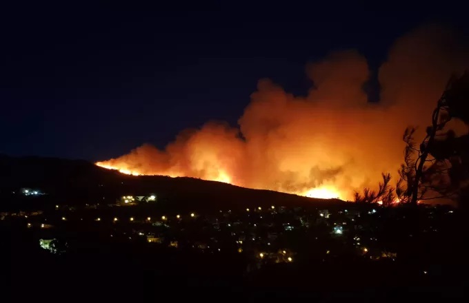 Δραματική η νύχτα στην Πεντέλη με τη φωτιά να καίει ανεξέλεγκτα και να απειλεί Ντράφι, Παλιά Πεντέλη, Ανθουσα και άλλες κατοικημένες περιοχές.