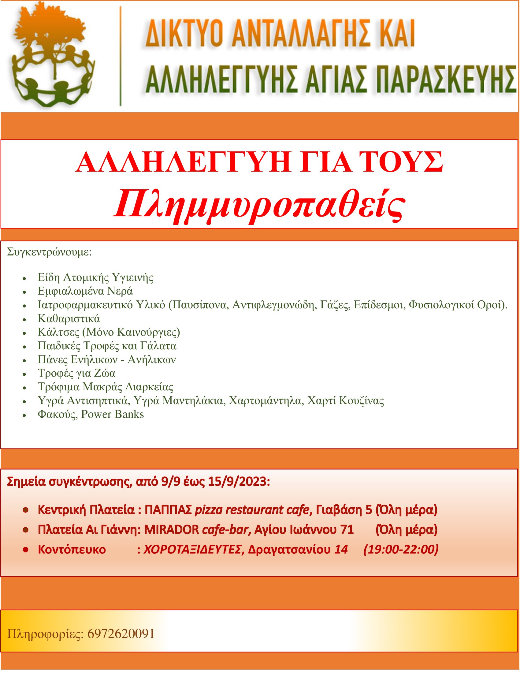 Το Δίκτυο Αλληλεγγύης Αγίας Παρασκευής συγκεντρώνει σε τρία σημεία της πόλης είδη πρώτης ανάγκης για την υποστήριξη των πληγέντων.