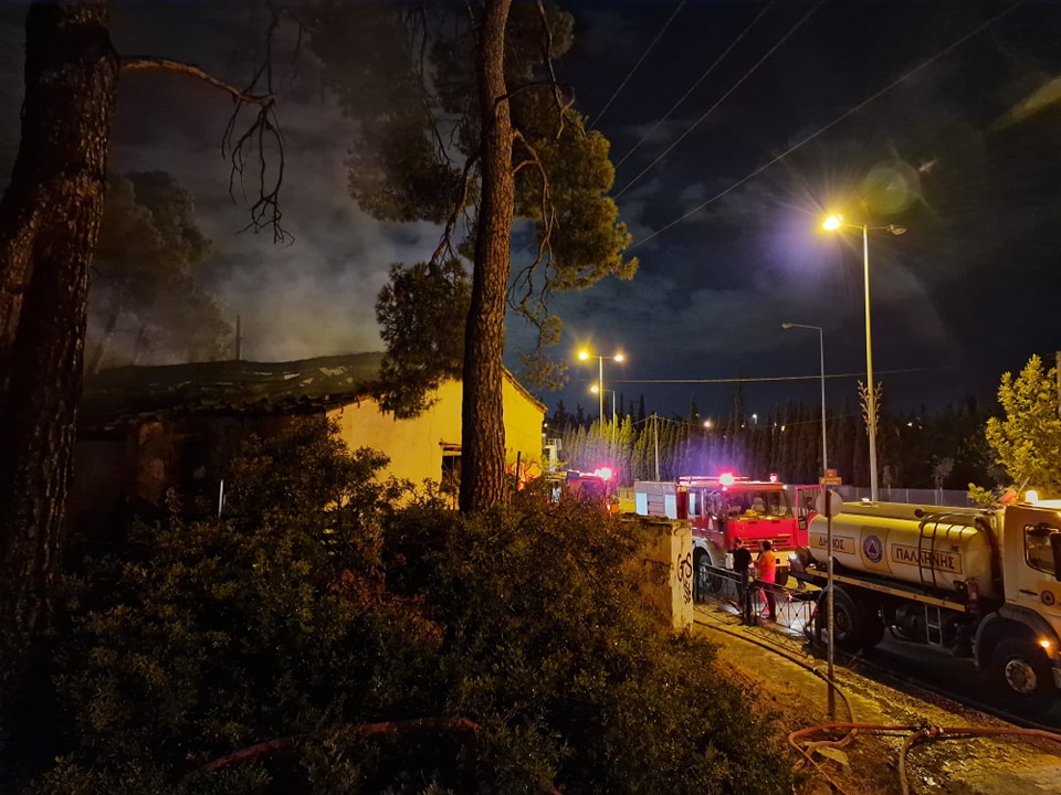 Φωτιά ξέσπασε στις 2.45 τα ξημερώματα, στο εγκαταλελειμμένο κτίριο στην είσοδο του Λόφου Λεβίδη στη Παλλήνη, πιθανότατα από αναμμένο τσιγάρο.