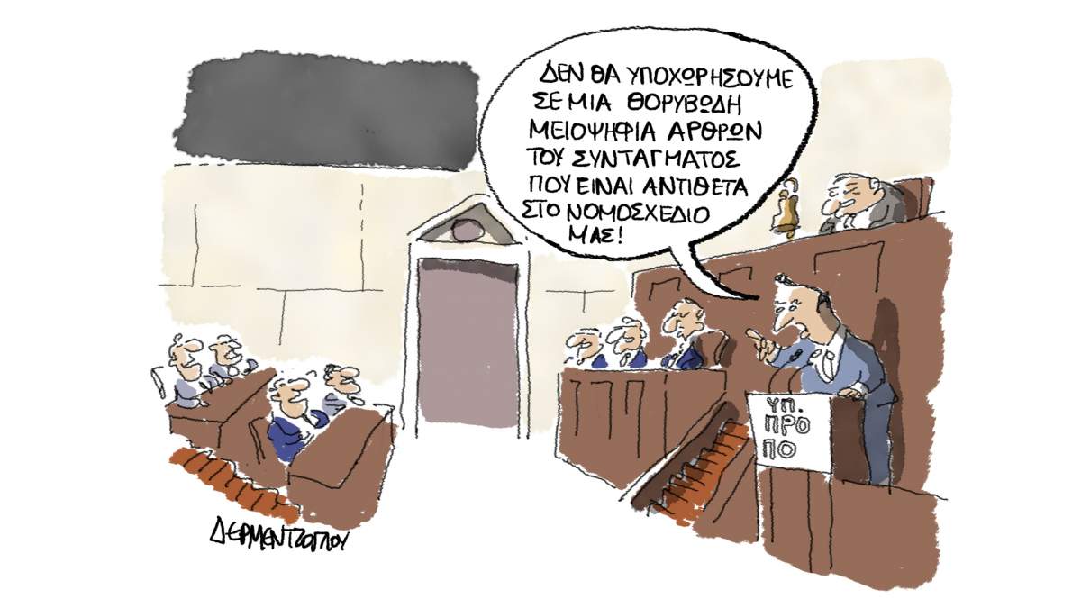 Την υπερψήφισή του παρά την αντισυνταγματικότητα κάποιων από τις διατάξεις του νομοσχεδίου σχολίασε με σκίτσο του ο Γιάννης Δερμεντζόγλου: