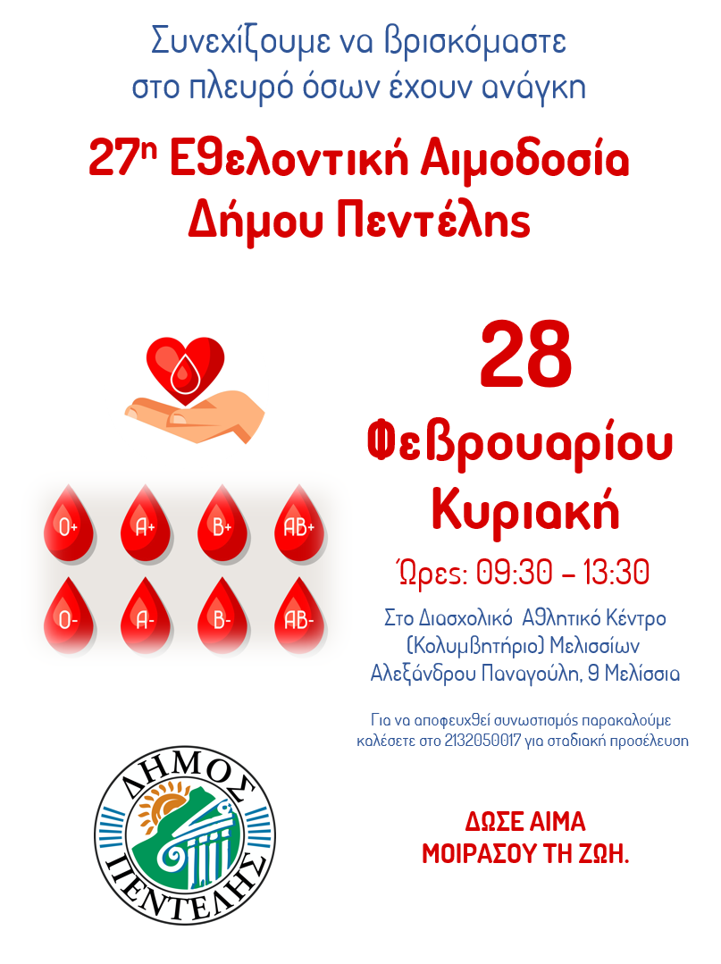 Σας περιμένουμε λοιπόν στην 27η Εθελοντική Αιμοδοσία που θα πραγματοποιηθεί
