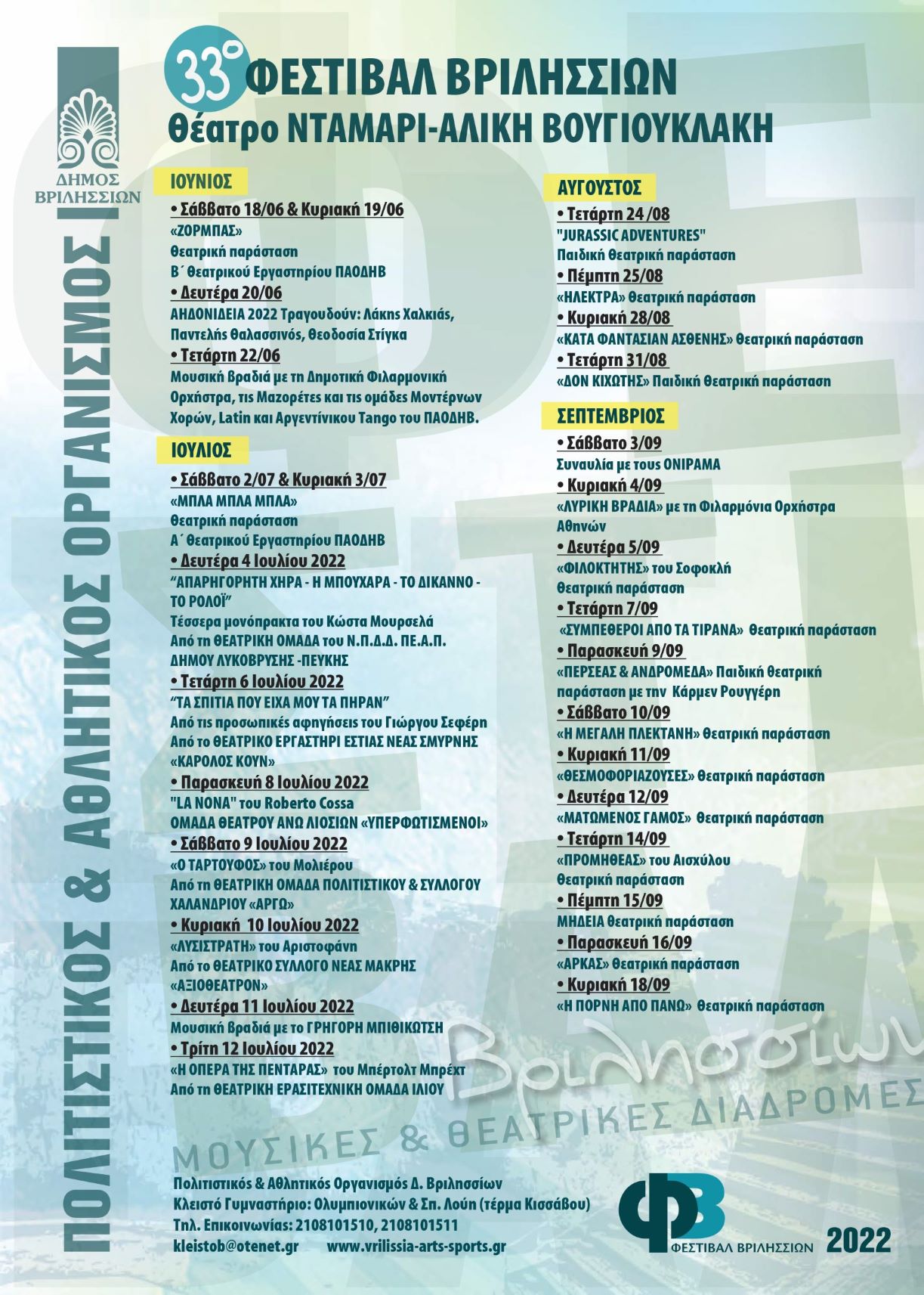 Δείτε το πρόγραμμα του 33ου Φεστιβάλ Βριλησσίων "Μουσικές & Θεατρικές Διαδρομές" 2022