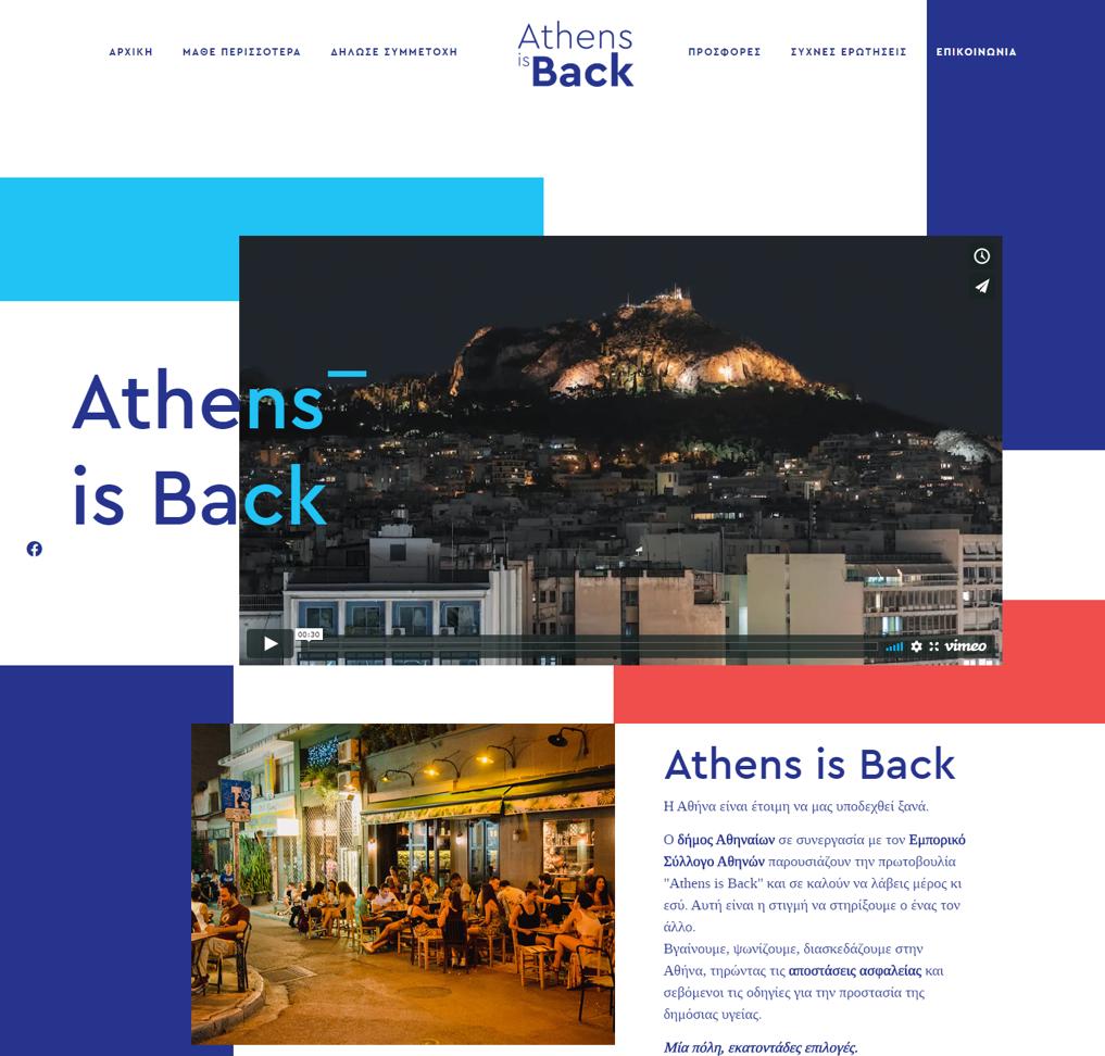 Η δράση, που υλοποιείται από την Εταιρεία Ανάπτυξης και Τουριστικής Προβολής του Δήμου Αθηναίων, θα παραμείνει ενεργή για τρεις μήνες και θα ολοκληρωθεί στις 16 Σεπτεμβρίου 2020. Η πλατφόρμα «Athens is Back» βρίσκεται από εχθές στη διάθεση κάθε ενδιαφερόμενου επιχειρηματία που θέλει να δηλώσει συμμετοχή και να μάθει όλες τις λεπτομέρειες αναφορικά με την ανάρτηση των προσφορών του.