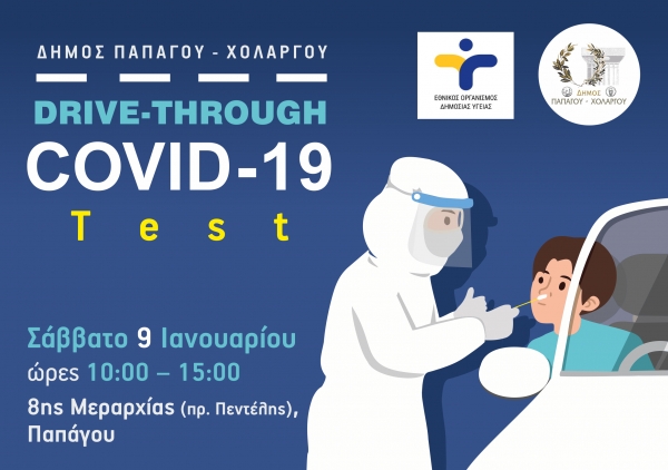 Ο Δήμος Παπάγου – Χολαργού σε συνεργασία με τον Εθνικό Οργανισμό Δημόσιας Υγείας, προχωρά στη διενέργεια drive through rapid tests, δωρεάν για τους κατοίκους της πόλης, το Σάββατο 9 Ιανουαρίου 2021 και ώρες 10.00 έως 15.00, στην οδό 8ης Μεραρχίας Παπάγου (πρώην Πεντέλης).